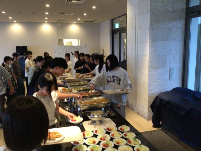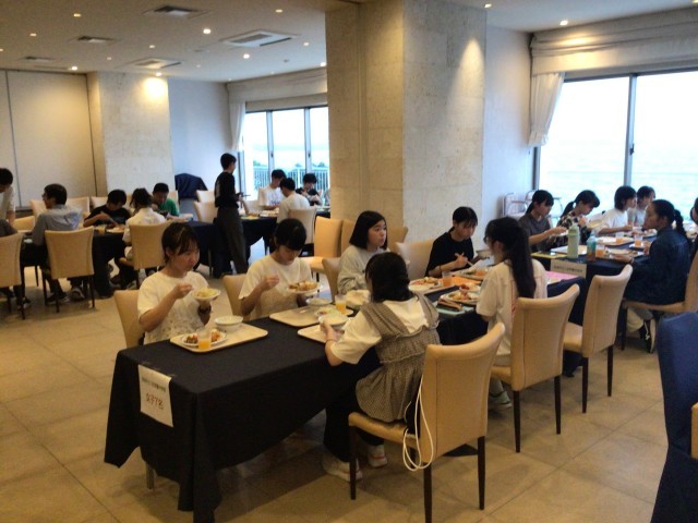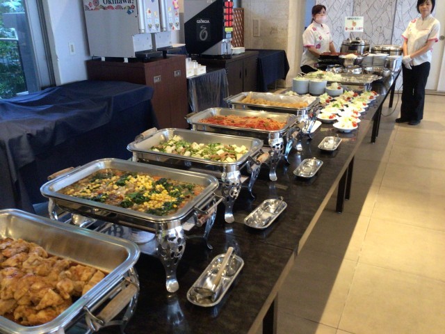 夕食はバイキングです 沖縄そばもあります みんなおいしく食べています