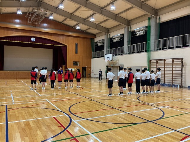 後期課程の体育でインターンシップが始まりました。大阪体育大学の学生が体育の授業に参加し、授業の進め方や指導の仕方を勉強します。1学期の毎週水曜日に来ます。