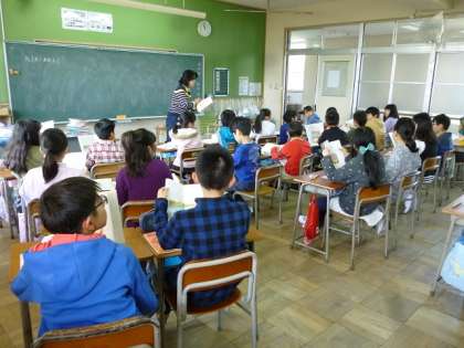 「あめ玉」順番に句点で交替して音読をしています。