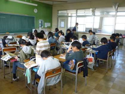 「大昔のくらし」資料集を使って、遺跡や出土品からどんなことがわかるかを考えます。