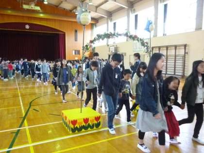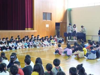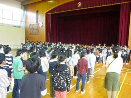 児童会委員会の司会と進行で、1年生と2年生から6年生の対面式を行いました。