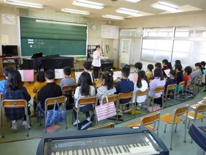 1組は音楽です。 「小さな約束」リコーダー奏の練習をしています。