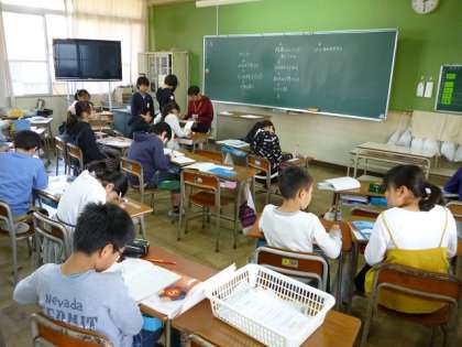 2組は算数です。 問題づくりをしていました。ティームティーチングです。