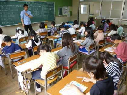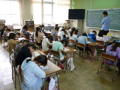 漢字練習をしています。書けた人は、筆順の練習をしています。