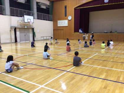 体育館でお楽しみ会をしていました。しっぽとりとドッジボールをしていましたが、しっぽとりでは、