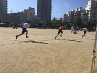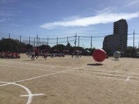 1限目に体育大会の全体練習を行い、1年生から9年生まで全員が運動場に集まり、入場...