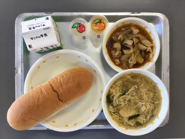 今日の給食の献立は、「タッカルビ、にらたまスープ、コッペパン、ミニゼリー」でした。今日も美味しくいただきました。