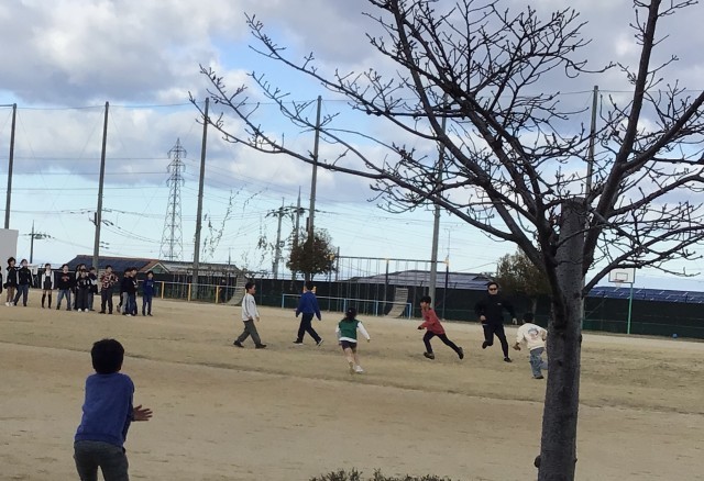 今日は、4年生で「逃走中」を運動場でしているクラスがありました。