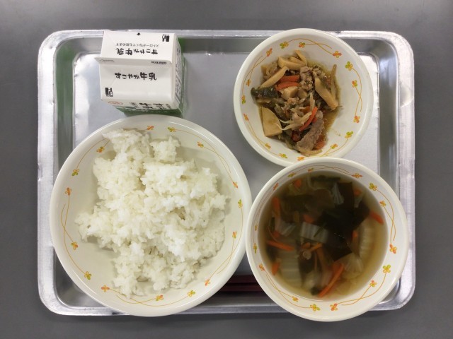 今日の給食は、「チンジャオロース、中華スープ、貝塚産ごはん」でした。