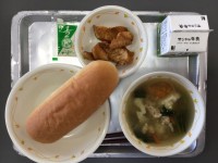 今日の給食は、「いわしのかば焼き風、ごま風みそ汁、ごはん、節分豆」でした。