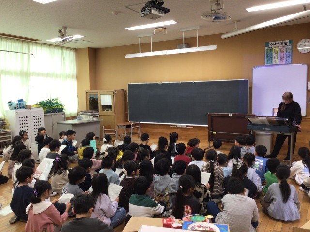 今日は、1年生が6年生とのお別れ会に向けて、言葉と歌の練習をしていました。
