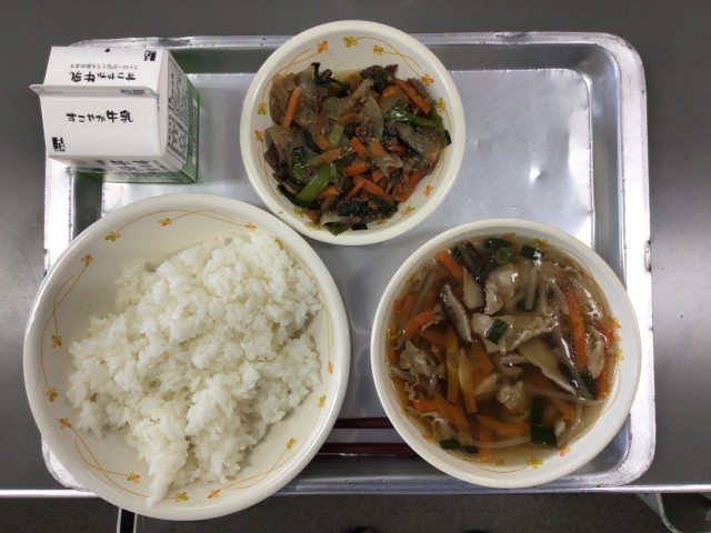 今日の給食は、「プルコギ、春雨スープ、ごはん」でした。