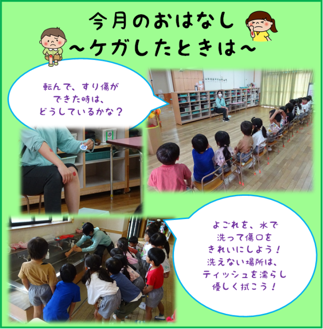 お家でも、転んだ時や怪我をした時、自分で傷の部分をきれいに水で洗えるといいですね☆