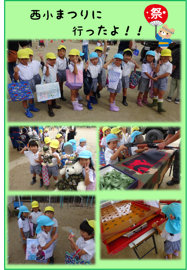 今日は西小学校で『西校まつり』が開かれたので、幼稚園のみんなで行ってきました♪