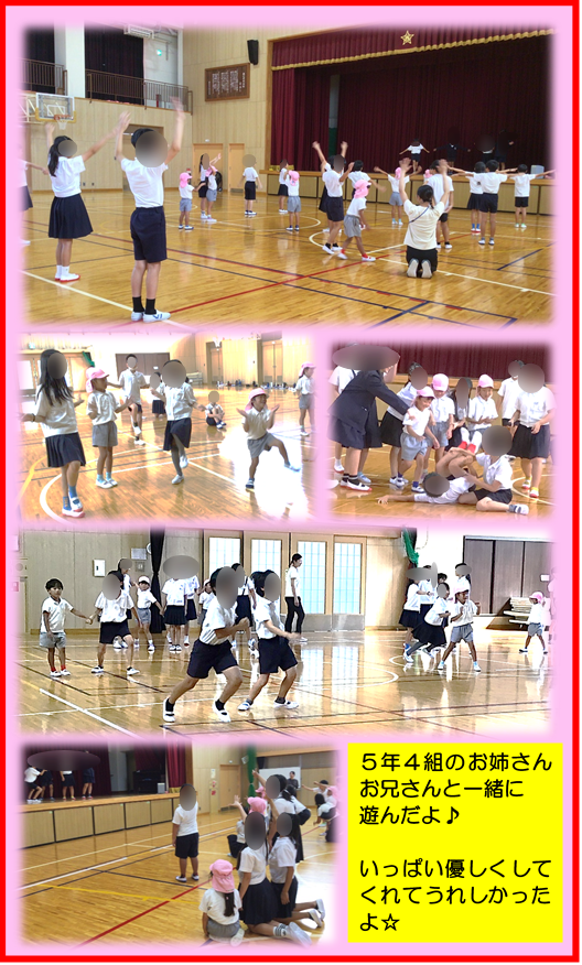 はな組だけではなく、5年生もニコニコ楽しそうに遊ぶ様子が見られ、とてもうれしく思いました。