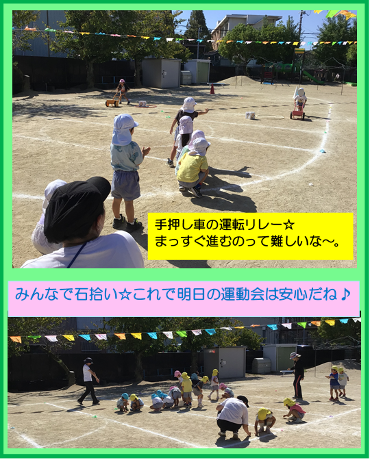 明日はいよいよ運動会ということで、みんなで運動会のリハーサルをしました♪