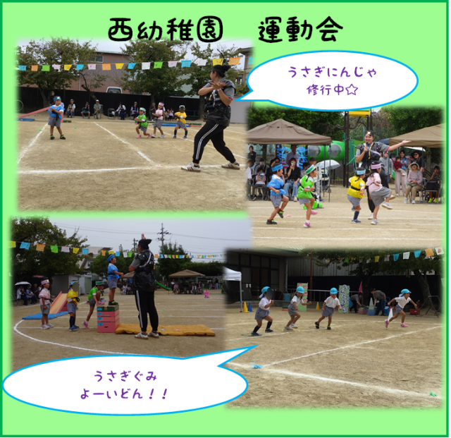 かけっこや忍者ごっこなど、たくさんの人の前でも普段通り、伸び伸びと体を動かす姿が見られました♪なかなかたくましいうさぎ組さんの姿に先生たちはみんなびっくりでした☆