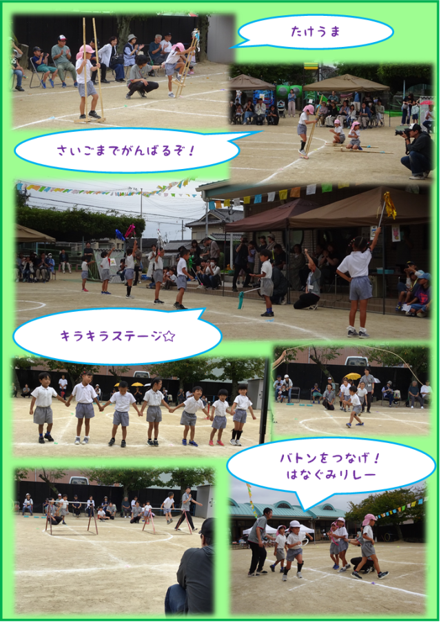 子どもたちの玉入れでは、的をめがけて投げるという動作が難しかったのですが、日々繰り返すうちに投げるフォームが少しずつ変わってきた子どもたちです。継続は力なり…ですね☆
