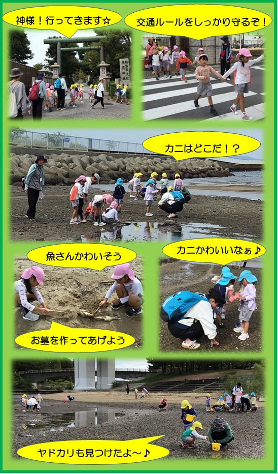 心地よい浜風を受け、波の音を聴きながら、夢中になって自然の中で遊ぶ子どもたちの姿を見て、子どもの成長を促す素晴らしい自然環境が幼稚園の近くにあることへの喜びを改めて感じました♪