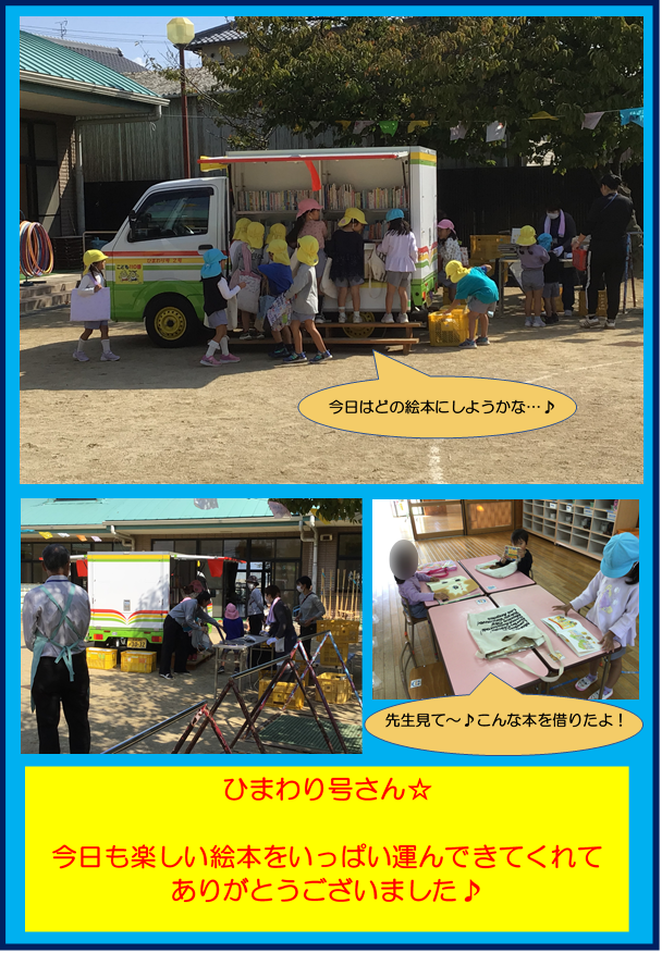 今月もたくさんの絵本を積んで西幼稚園にきてくれた“ひまわり号さん”
