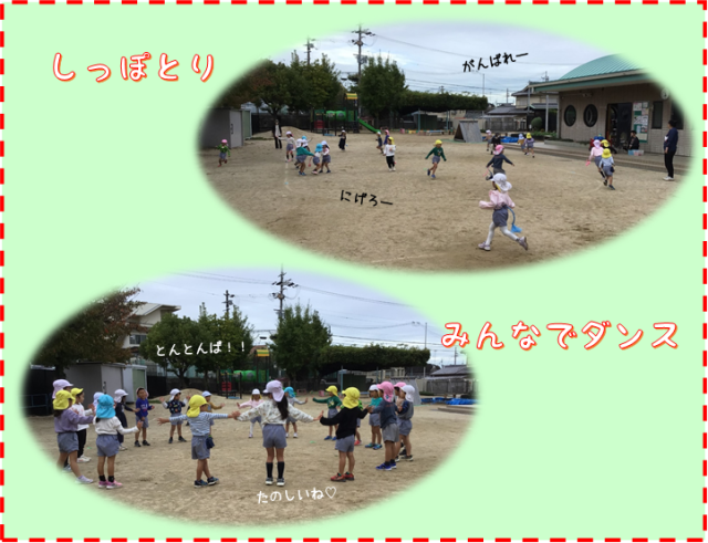 きょうもみんなでしっぽとりをしました