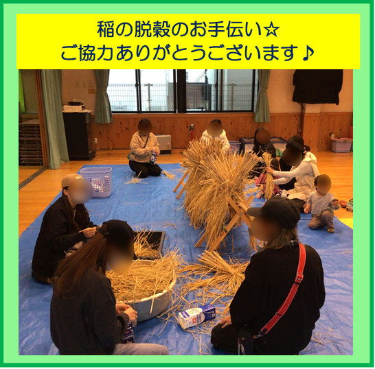 「やっていたら楽しくなってきた♪」「何時間でもやってられそう♪」「お米がプチプチ外れていく感覚が気持ちいい♪」など、保護者の方も楽しみながらお手伝いしてくださっているお姿を見て、うれしさとともに感謝の気持ちでいっぱいになりました☆