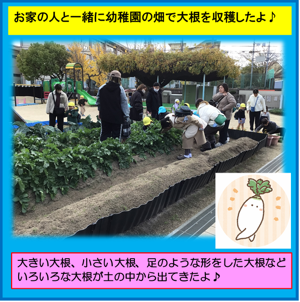 お家の人と一緒に大根を抜いたよ♪