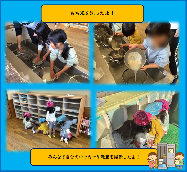 明日のもちつき大会(鏡餅作り)に向けて、みんなでもち米を洗いました☆