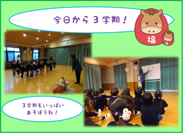 3学期も子どもたちが楽しく充実した時間を過ごす中で、たくさんの学びを得られるよう、職員一同力を合わせ、頑張ってまいりたいと思います。