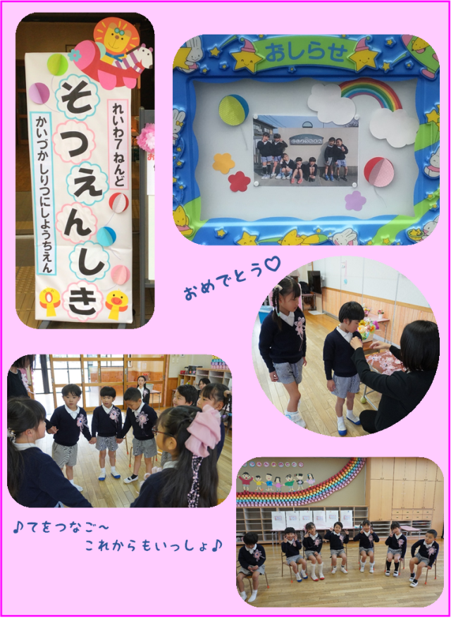 夜中降り続いていた雨が、子どもたちの登園時には止み、式の最後には晴れ間が出るという奇跡のような空模様でした☆
