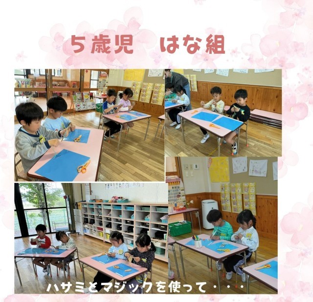5歳児は、ハサミとマジックを使って季節ならではのものが。
