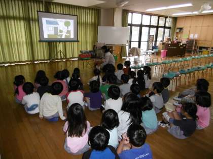 みんなで紙芝居を見たり、クイズに答えたりして、健康な歯について学びました。