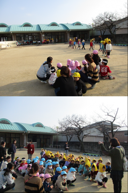 その後、園庭に集まり4・5歳児は小学校へ移動しました。