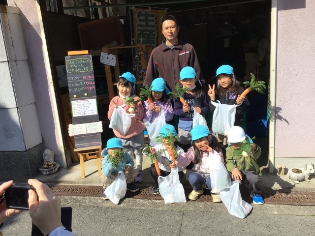 帰り道、自分で買った野菜を、みんな大切そうに持って歩いています♪きっと特別な野菜になったことでしょう☆