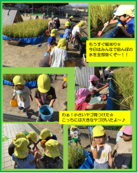 今日の子どもたちの様子です もうすぐ幼稚園の稲刈りをするため、今日はみんなで田...