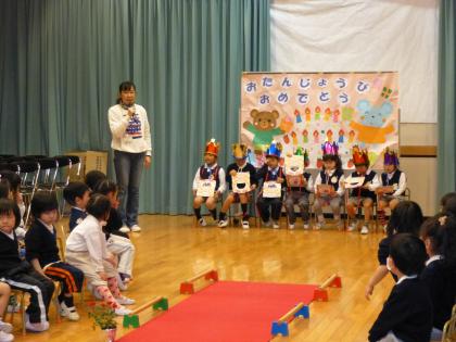 3月8日(金) 今日は3月生まれの誕生会がありました。 みんなでホールに集まっ...