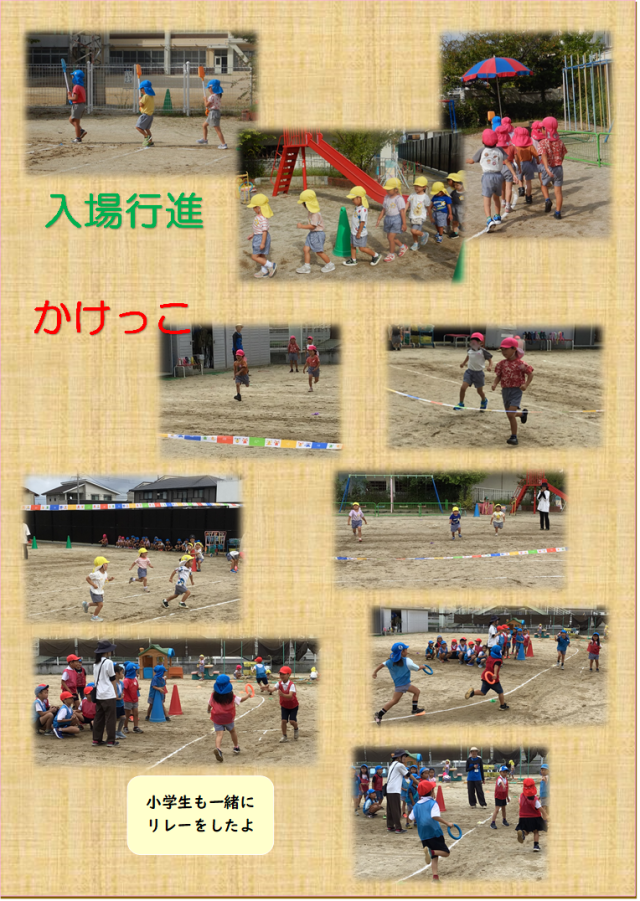 こあら組は、1年生や2年生と一緒にリレーをしています。小学生と一緒に走ることでこあら組も刺激を受け、どんどん速く走れるようになってきました!