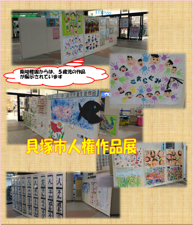 幼稚園・小学校・中学校の人権作品展が開催されています。ぜひご覧ください。