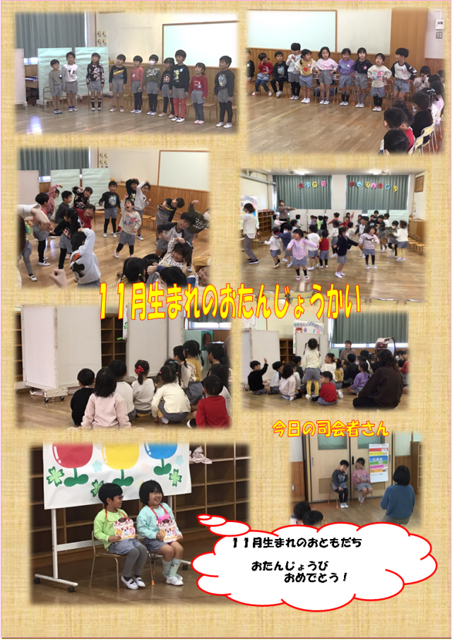 みんなで11月生まれのお友だちをお祝いしたり、絵本部さんの読み聞かせもありました。