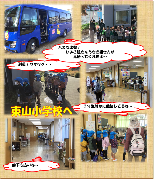 今日はバスに乗って年長さんが東山小学校に行ってきました。