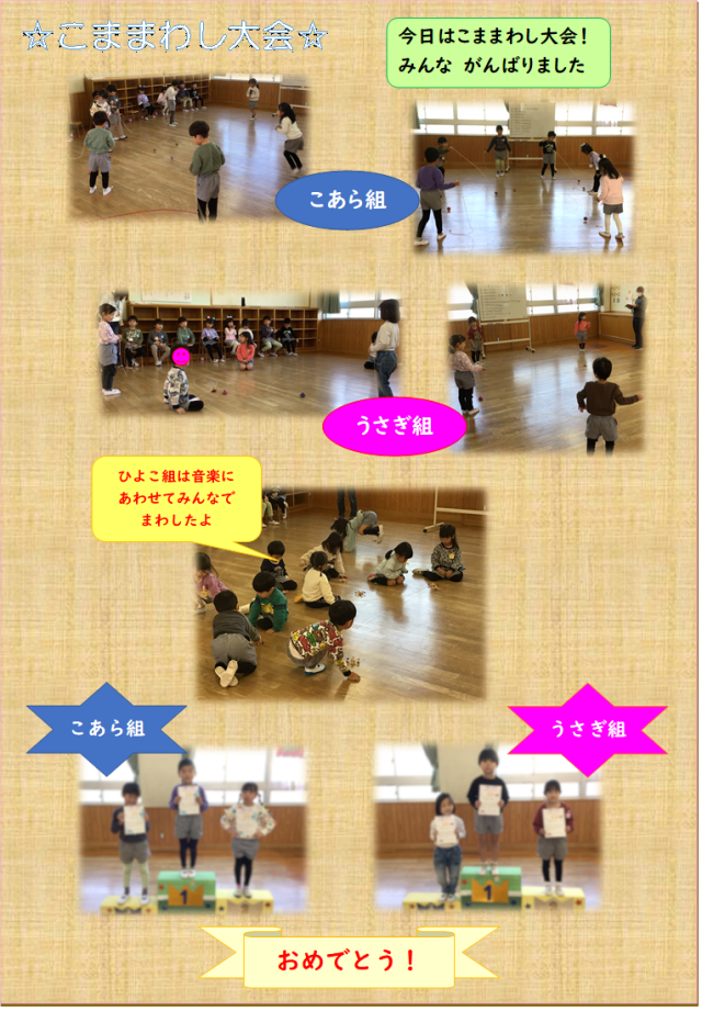みんなとってもがんばったね。これからもこまでいっぱい遊ぼうね☆