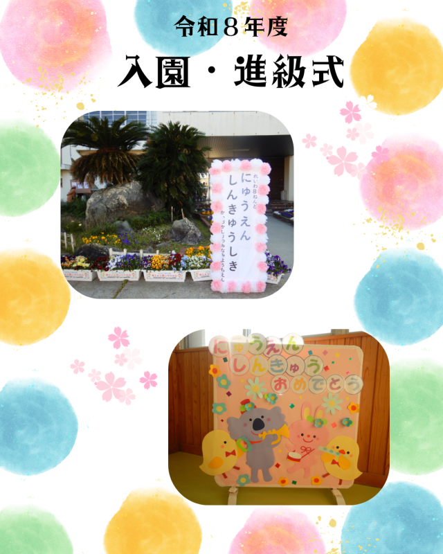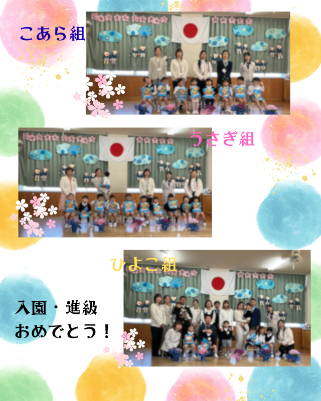 保護者の皆様、お子様のご入園、ご進級おめでとうございます。