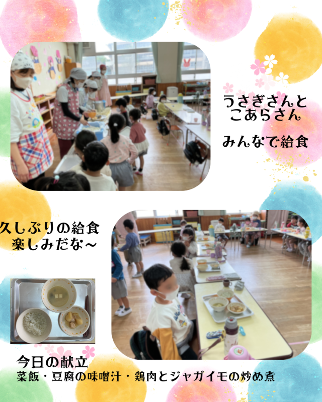 今日は、うさぎさんとこあらさん一緒に給食を食べました。机の片付けはこあらぐみさんがうさぎぐみさんの分も手伝ってくれました。ありがとう!