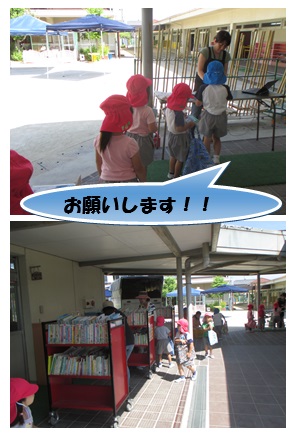 『わぁ〜車が来た!』と移動図書館の車を見て大喜び!