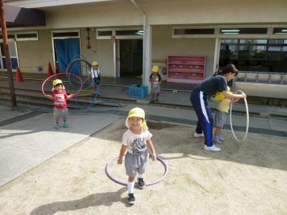 「あ、なにこれ?」「こおろぎやで」と、異年齢児に教わったりしながら、目を光らせて、バッタやこおろぎを探すひよこぐみさんです。