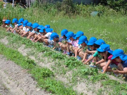 年長児がみんなで草引きに行きました。