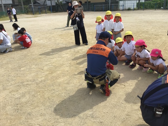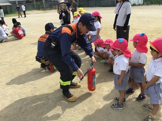 その後は、消防士さんから消火器の使い方や避難の時の大切な行動について改めて教えていただきました。