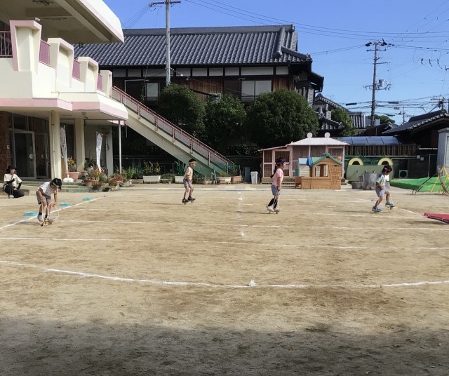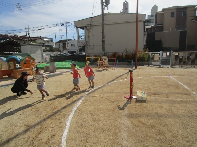 竹馬や一本歯げたに挑戦したり、縄遊びをしたり、かけっこやリレーをして、たくさん体を動かして遊びました。