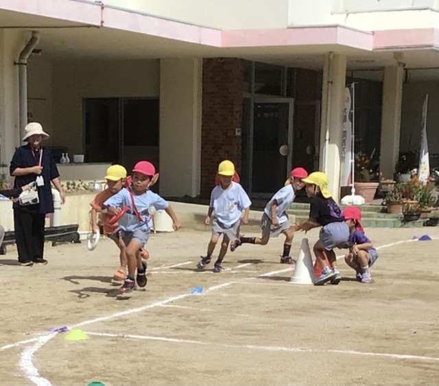 かけっこやリレーでは、ほし組さんが走ると、はな組さんとにじ組さんが「がんばれ!」と応援。