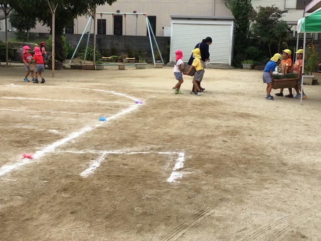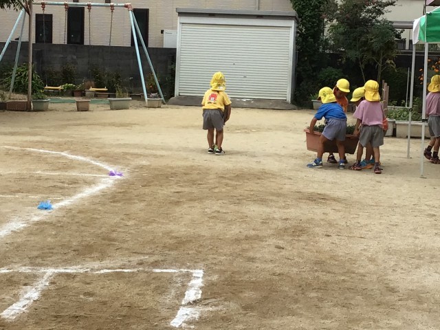 今日はみんなで運動会に向けて園庭の準備をしました。